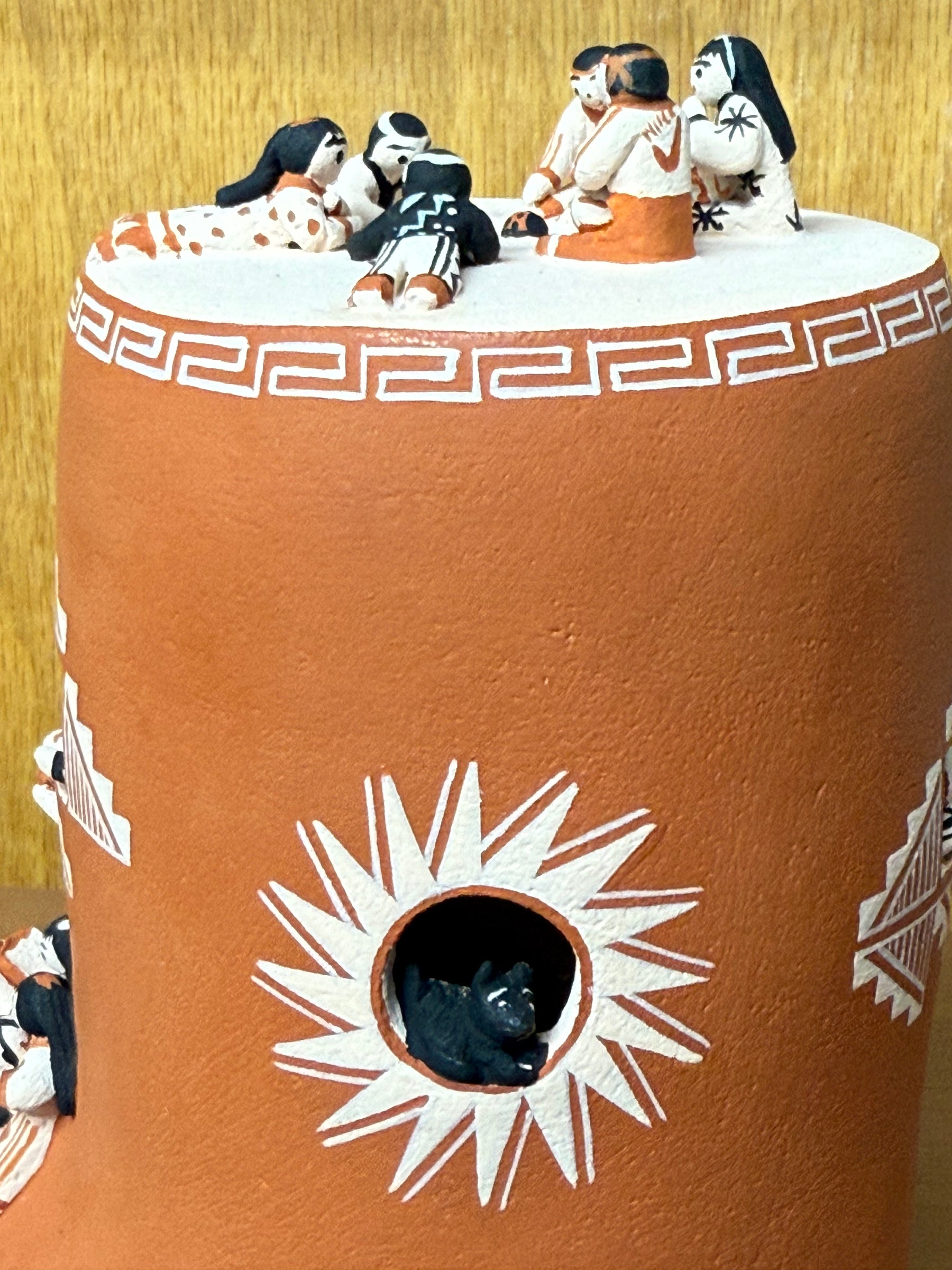 Dena Suina was born in 1961 into the San Felipe Pueblo. Dena married into the Pueblo of Cochiti in the 1980s. She sparked an interest in sculpting clay figures while observing her mother-in-law, Louise Suina, hand coil and hand paint her beautiful clay sculptures. Louise taught Dena all the fundamentals of how to hand coil all types of sculptures using traditional methods.